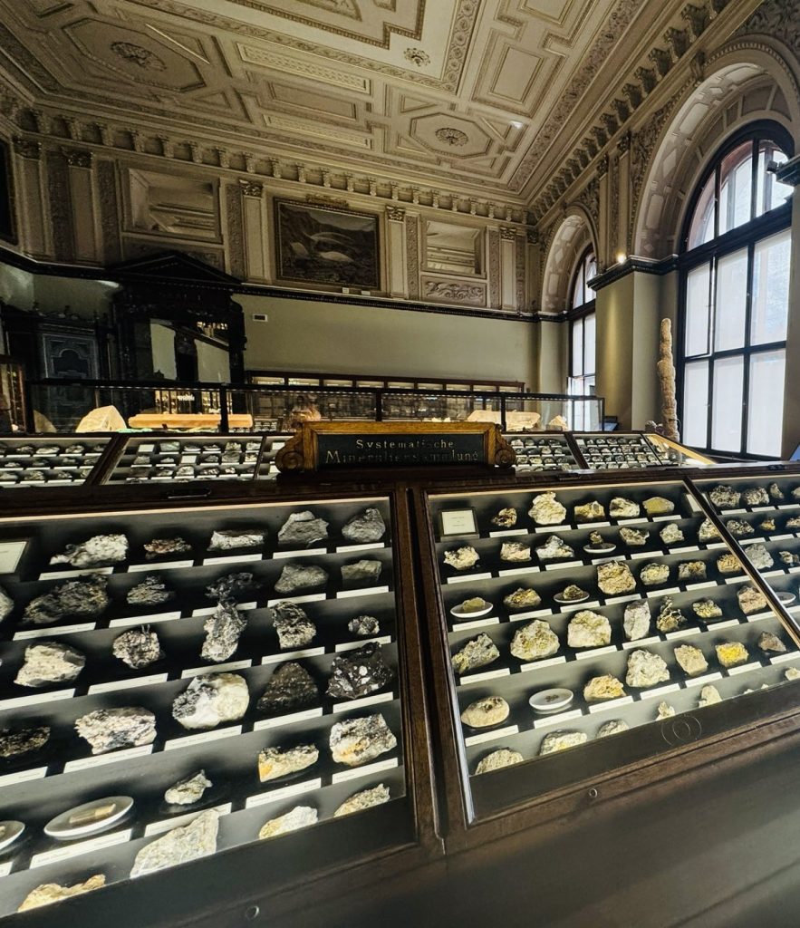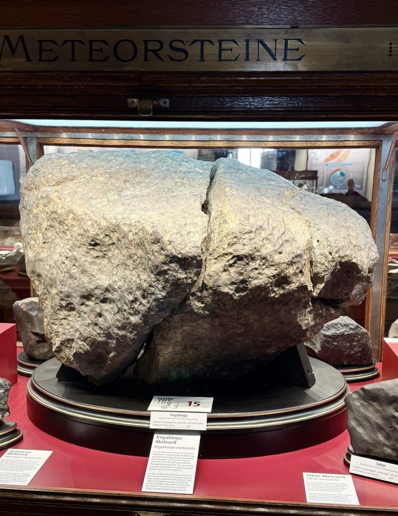 Beş no.lu odada Ukrayna’dan, 300 kg ağırlığında bilinen en büyük meteorlardan biri ile karşılanıyordunuz (Resim 5). Viyana’daki bu meteor koleksiyonunda, 1778’den beri toplanan yaklaşık 8000 parça mevcuttu (Resim 6). Meteorlar, değişen küresel ısınma ve değişikliklerden dolayı oluşarak uzay sisteminden dünyaya gelen, çarpan parçacıklardır. Bu nedenle, meteorlar gezegenlerin yüzeylerinin oluşumunu etkiler. Aynı zamanda yeryüzündeki yaşamın evrimleşme sürecini de yansıtır. Kıtaların son halinin oluşumuna asteroitlerin yani meteorların sebebiyet verdiği bilinir.