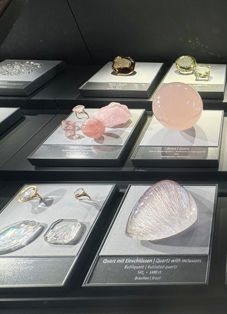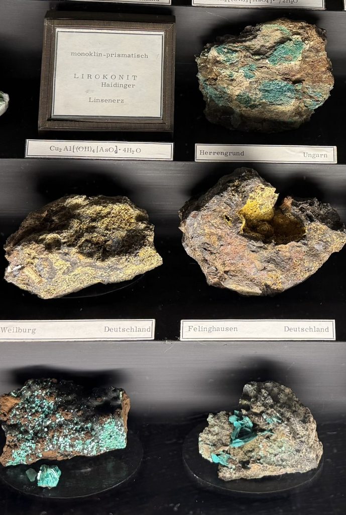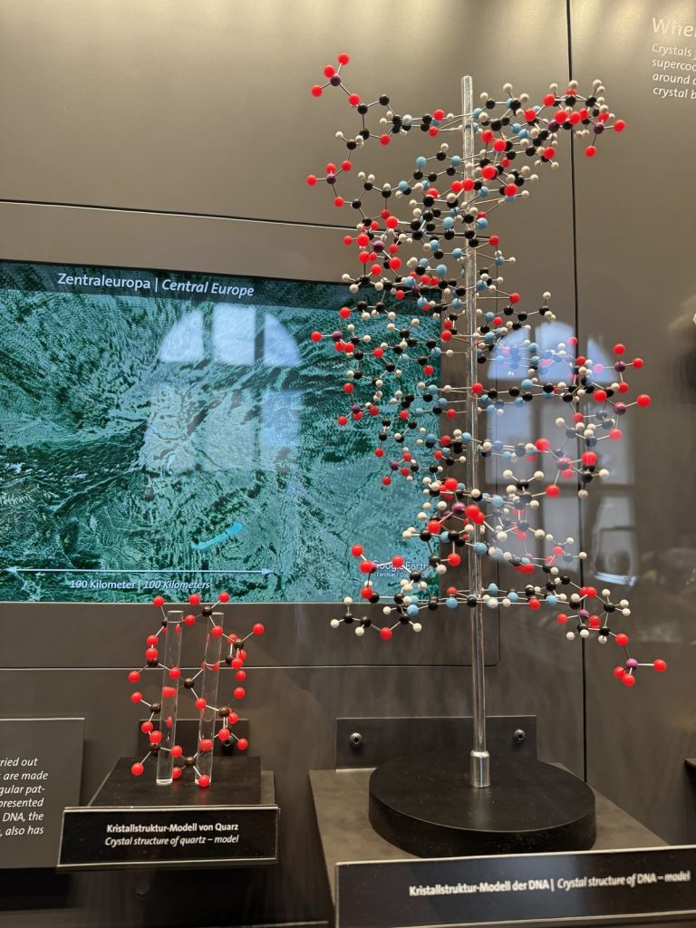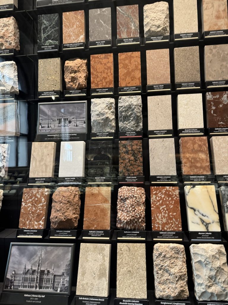 İlk odada mineral oluşumları ziyaretçiyi karşılıyordu (Resim 2). Doğada hangi minerallerin bir araya gelerek hangi tür taş oluşumuna sebebiyet verdiği açıklamaları, bileşenlerinin isimleri ve bulundukları ülkeler ile sergileniyordu. Minerallerden kristallere, kuvars taşlara ve değerli taşlara örnekleri keşfederken alandaki dijital ekrandan ülkelere göre taşları aratabiliyordunuz. Bazı binaların yapımı ve restorasyonunda kullanılan taşlara da örnekler verilmişti (Resim 3).