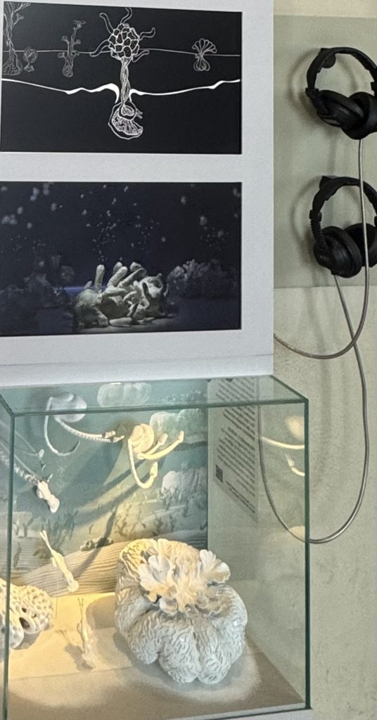 İnsanoğlunun doğa üzerindeki gücünü ve etkisini göstermeye başladığı çağ olarak bilinen Antroposen veya İnsan Çağı’nın 1945’de ilk atom bombası test denemeleriyle başlamış olduğu, olumsuz sonuçlarının ise hala hissedilebilir ve hissedilmeye devam edecek olması, üzücü bir gerçekle ifade edilmişti. Atmosferdeki değişiklikler ve meteorların etkisiyle canlıların soyları tükeniyordu, fosilleşiyorlardı. Bir taşa ya da bir yapı içinde fosillenmiş halleri ve resimsel örnekleri gösterilmekteydi (Resim 9).