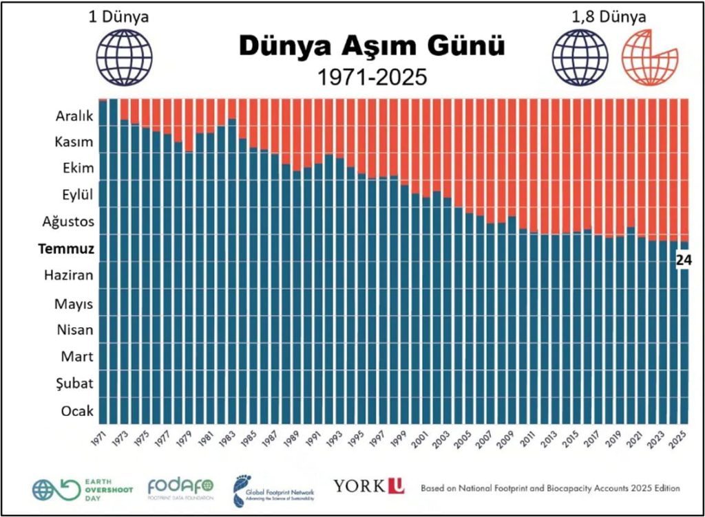 WWF, 2025, Limitimizi Yine Aştık, 23 Temmuz 2025, https://www.wwf.org.tr/?16280/limitimizi-yine-astik#:~:text=Ekolojik%20Ayak%20%C4%B0zi%20kavram%C4%B1n%C4%B1n%20%C3%B6nc%C3%BCs%C3%BC,n%C3%BC%2024%20Temmuz%20olarak%20belirledi.