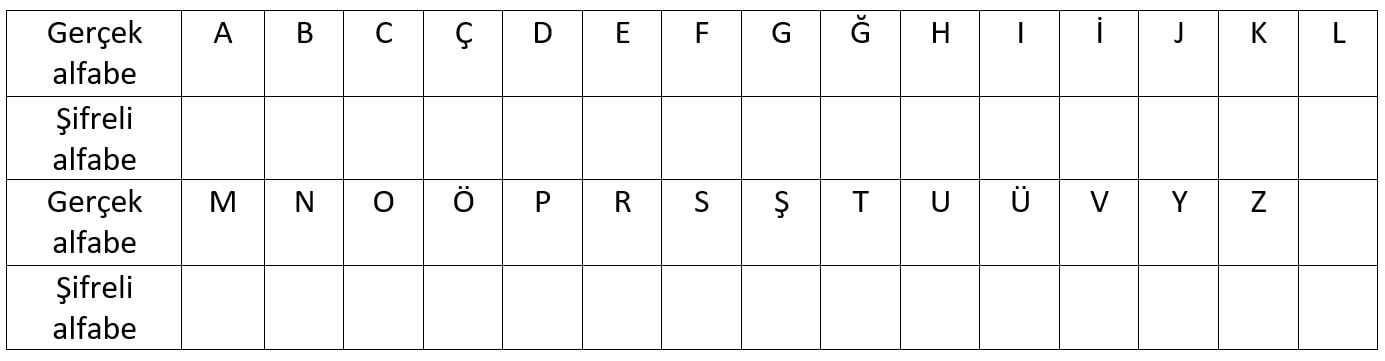 Sezar Şifresinde genel ilke, belli bir örüntüyle harflerin yerlerini değiştirmektir. Her harf, kendisinden belli sayı sonraki harf kullanılarak yazılır. Örneğin aşağıda modellenen 2 harf atlamalı bir Sezar Şifresinde “ matematik” sözcüğü şifreli olarak “ öçvhöçvln” biçiminde yazılır.